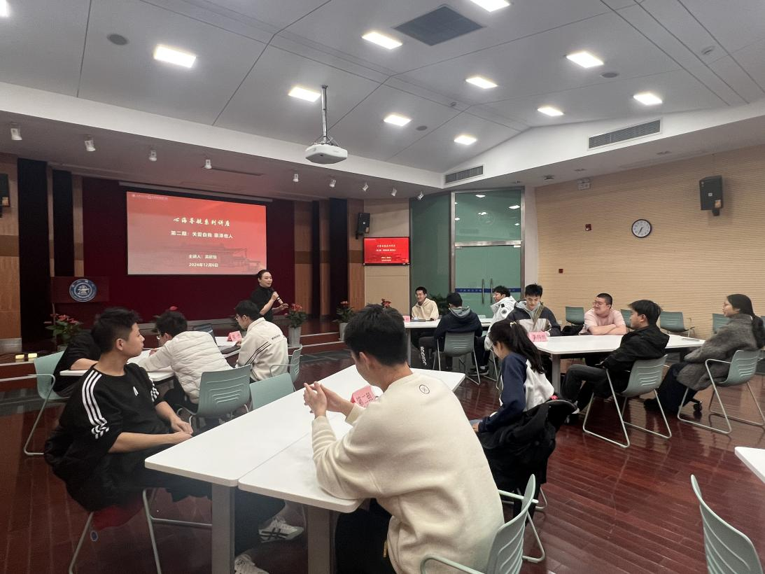 12月6日,77779193永利官网成功举办了心海导航系列讲座第二期——关爱自我 惠泽他人。本期活动邀请到77779193永利官网心理咨询中心专职咨询师、中国心理学会注册心理师、国家二级心理咨询师吴欣怡老师带领同学们开展了一场别开生面团体辅导活动。活动主要围绕如何更好的关爱自我,帮助他人内容展开。学院辅导员、各年级班干部参加了本次活动。